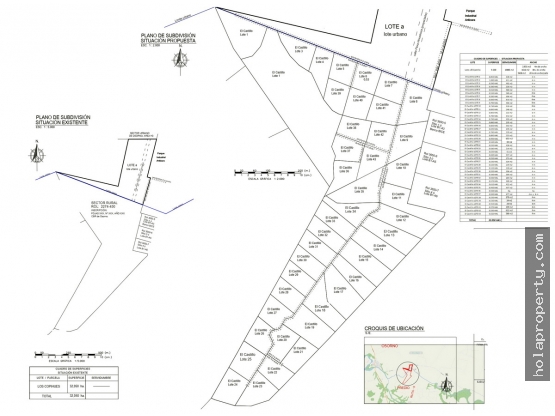 La parcelación contempla la división del terreno en 43 lotes, cuyas dimensiones varían entre 0,510 hectáreas (lote 5) y 4,850 hectáreas (lote 1). Esta variabilidad en el tamaño de las parcelas permite atender diferentes necesidades habitacionales y productivas, promoviendo un entorno que respeta la diversidad de sus posibles habitantes.